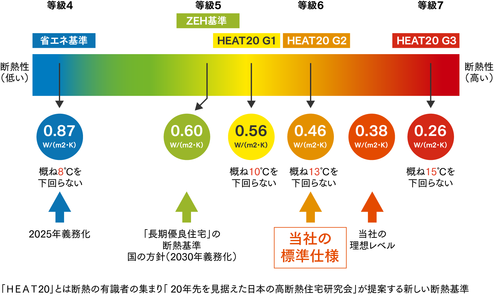 そのために当社では住宅の高気密高断熱化に取り組んでいます。最近の調査研究では、住宅の高断熱化によって、健康が改善されるとの研究成果が多数報告されています。それだけでなく、住む人の健康寿命を延ばし医療費の削減にもつながっています。